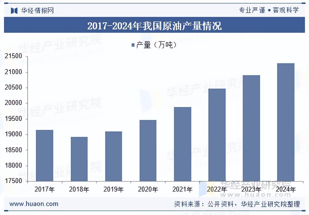 2024年,我国原油产量达到21282万吨,同比增长1.8%,这是我国原油产量连续6年实现增长,国内原油2亿吨长期稳产的基本盘进一步夯实。海洋原油大幅上产成为关键增量,产量突破6200万吨,连续4年占全国石油增产量的60%以上。页岩油勘探开发稳步推进,新疆吉木萨尔、大庆古龙、胜利济阳3个国家级示范区及庆城页岩油田加快建设,苏北溱潼凹陷多井型试验取得商业突破。